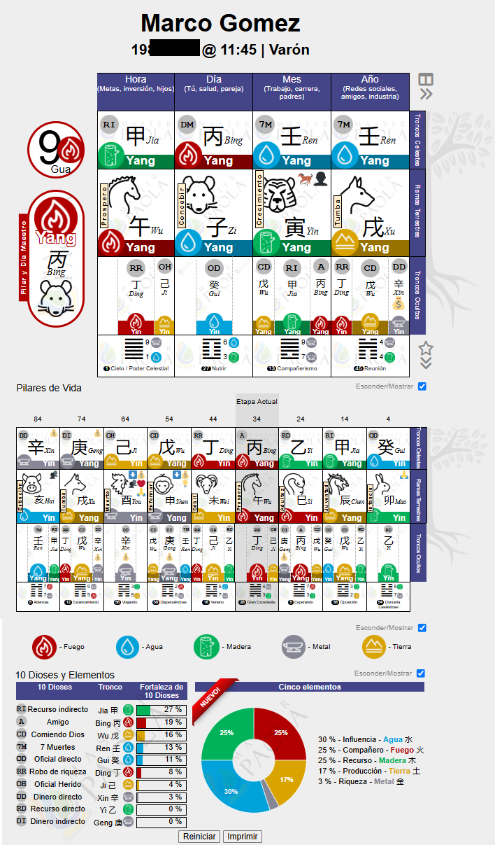 On the back end, I architected a bespoke PHP REST API layer sitting atop a MySQL database of Celestial Stems, Earthly Branches, hexagrams and auxiliary stars. Given a user’s date‑and‑time of birth, the API performs dozens of chronological, elemental and directional lookups—over 300 discrete data points in a single request— parses hidden pillars, luck cycles, life stages and decan interactions, then returns a structured JSON payload that drives the front‑end renderer.